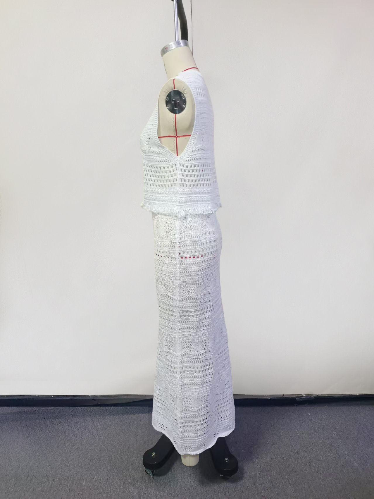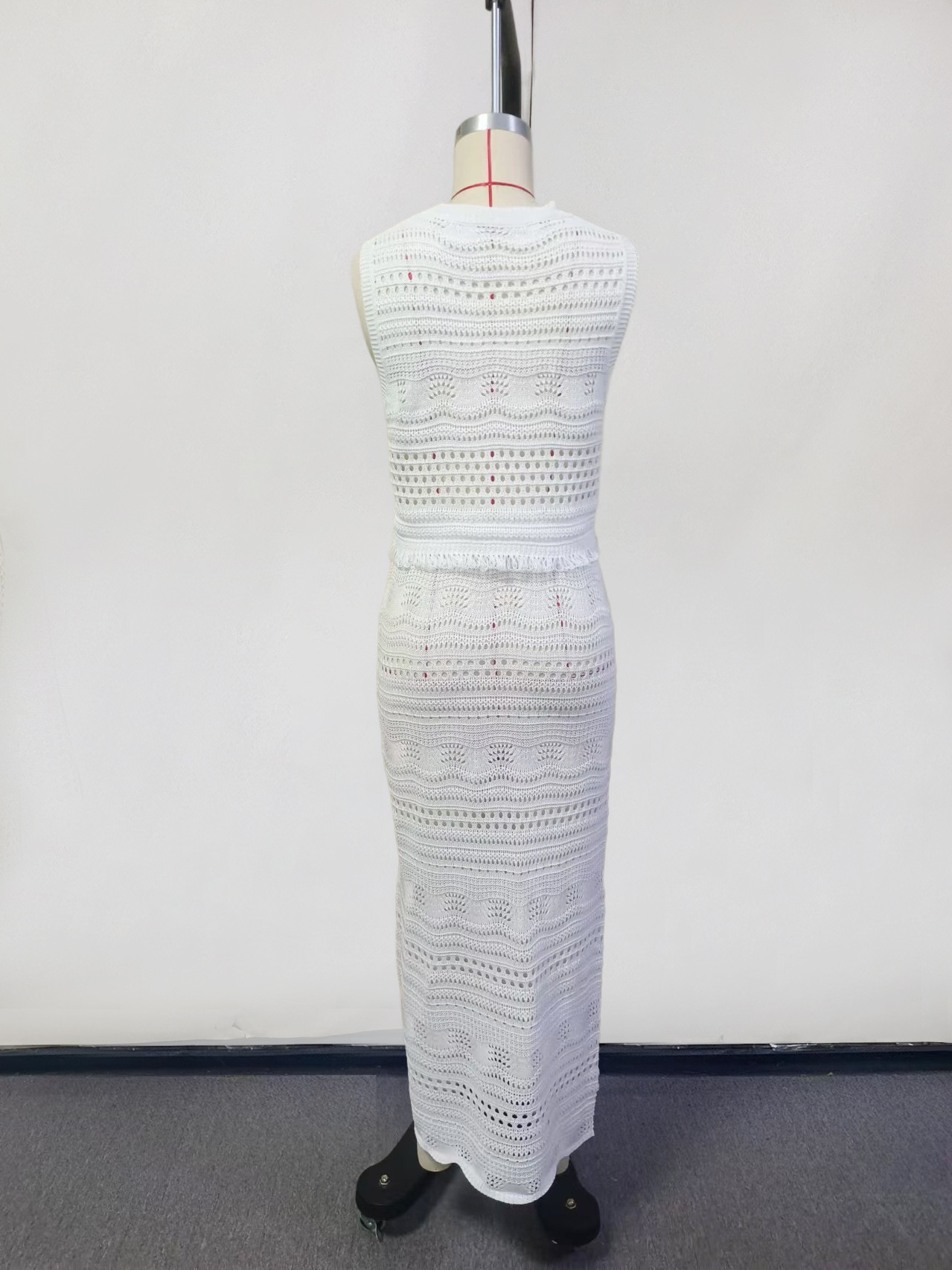Maxi Dress Women Solid Color Knitted Beach Dress Bikini Swimsuit Blouse Sun Proof Set