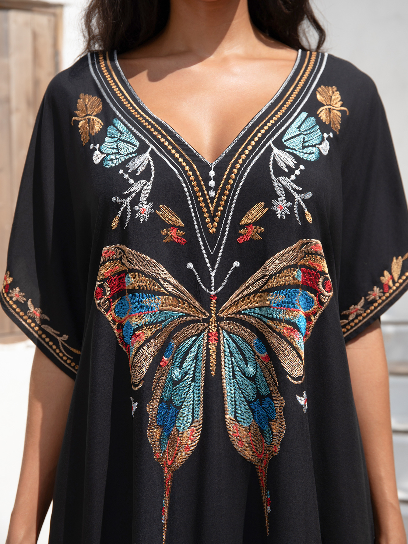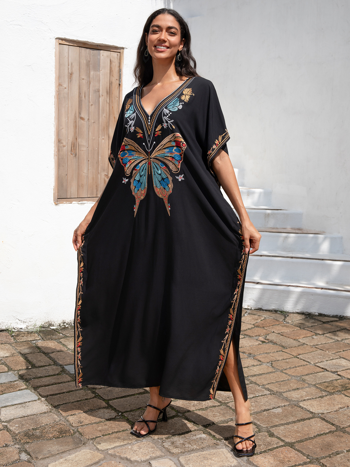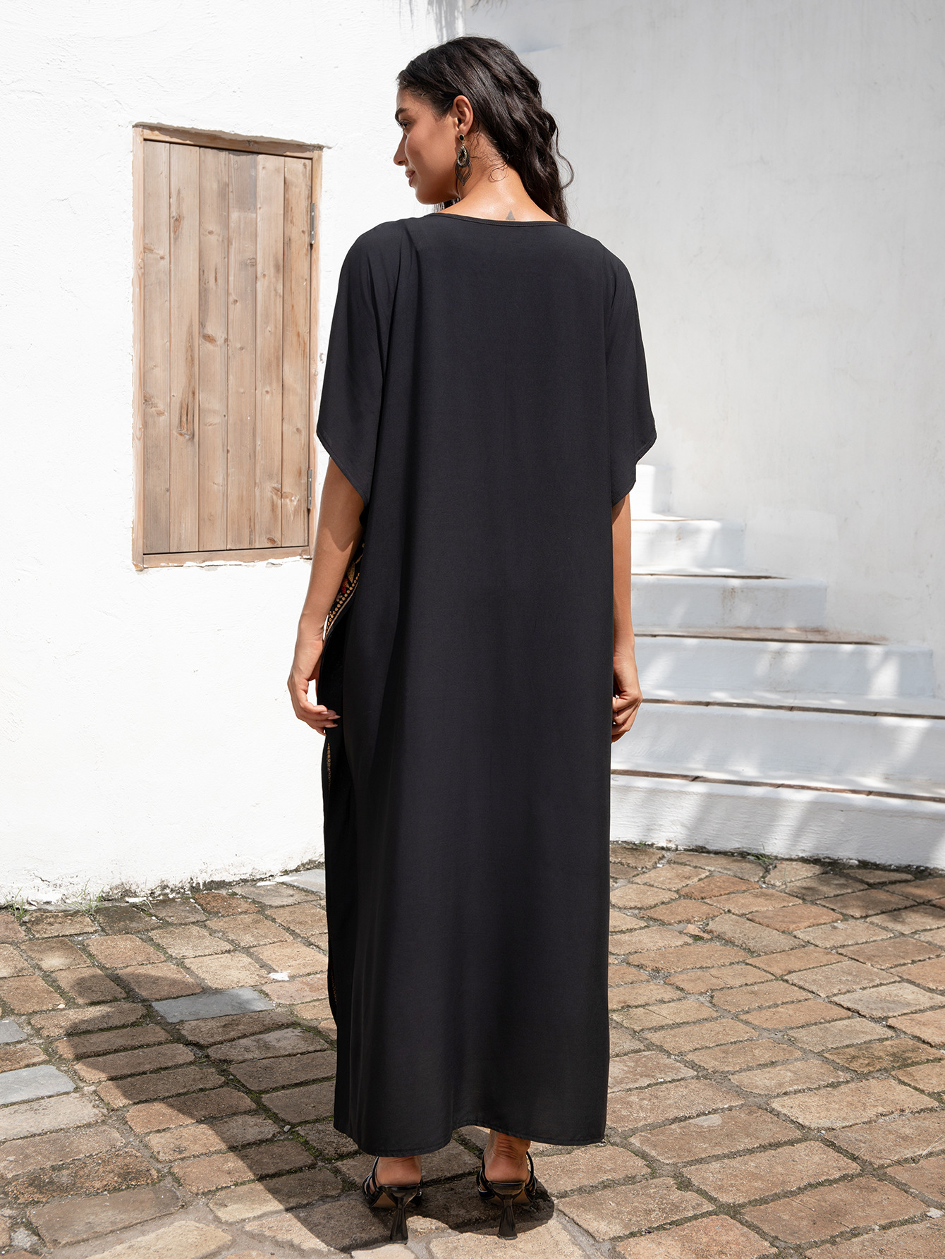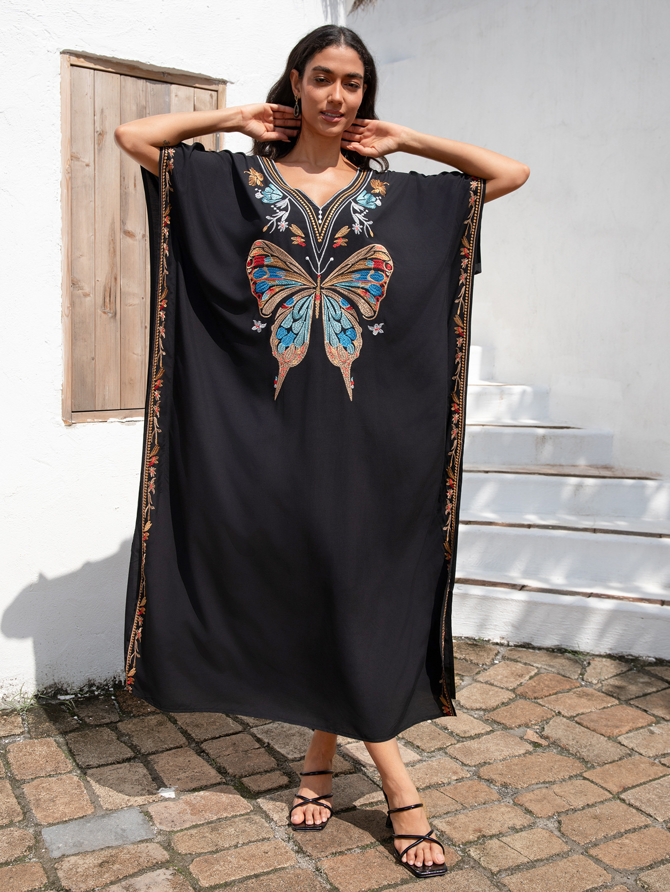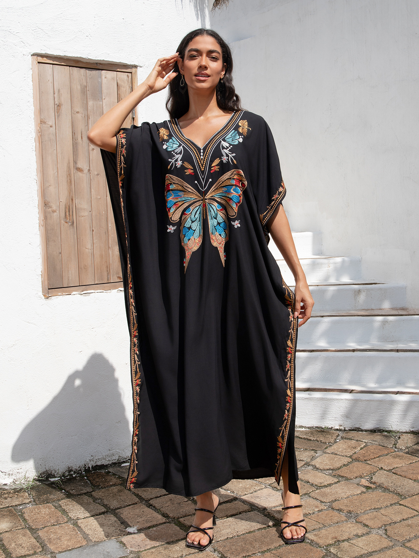Rayon Embroidered Vacation Loose Beach Maxi Dress Women Beach Cover Up Sun Protective Clothing